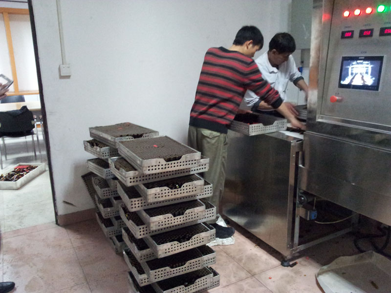 [實驗記錄]利用微波隧道式殺菌設備進行連續式的進料殺菌,溫度達到85度,三分鐘的殺菌時間,對口服液進行殺菌處理。